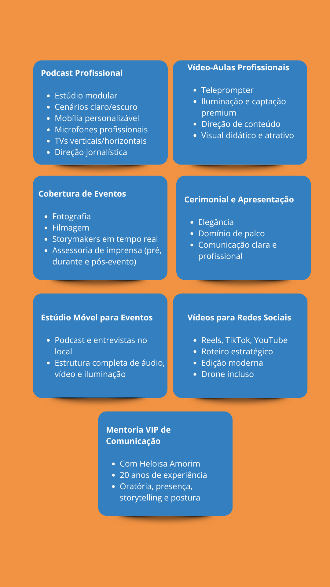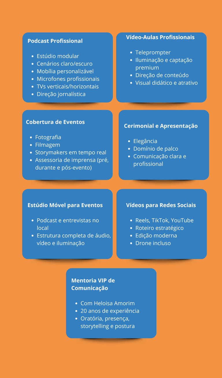 Produção de podcasts, vídeo-aulas, vídeos para redes sociais, coberturas de eventos e comunicação estratégica tudo com estrutura profissional e direção especializada.